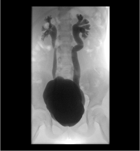 La Cistouretrografía Miccional Seriada permite, habiendo administrado contraste yodado a través de una sonda vesical que posteriormente se retira, valorar la capacidad vesical, la pared vesical, la existencia o no de reflujo vesicoureteral uni o bilateral y, una vez retirada la sonda vesical, valorar la uretra y descartar cualquier anomalía en el tracto urinario inferior. En este caso, ya que se habla de una paciente que ha tenido un reflujo vesicoureteral (en el cual las válvulas vesicoureterales son incompetentes) tratado con Sting (cirugía endoscópica antirreflujo) pero que se sospecha que ha recidivado, con esta técnica vamos a poder valorar la vejiga y ver si hay reflujo vesicoureteral y el grado de éste.