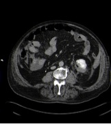 No se encuentra extravasado de contraste en la fase arterial por lo que se descarta lesión vascular. Existe una alteración de la anatomía normal del polo inferior del riñón izquierdo con solución de continuidad del parénquima (laceración) y una imagen en la parte posterior del mismo compatible con hematoma.