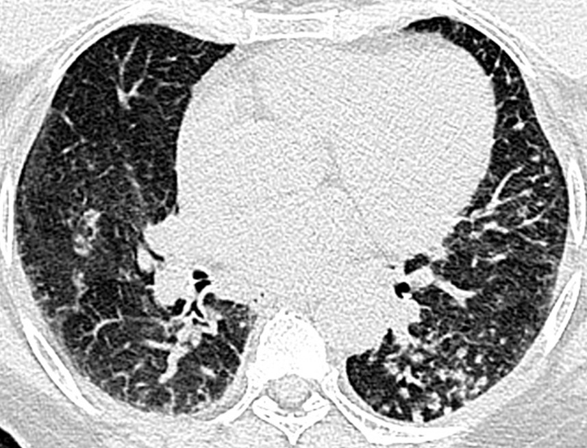 Opacidades lineales bilaterales, y nodulares basales izquierdas