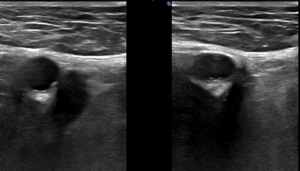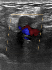 Eco-Doppler de los miembros inferiores (CON comprensión externa) en la fosa poplítea.